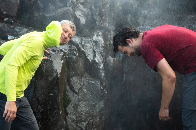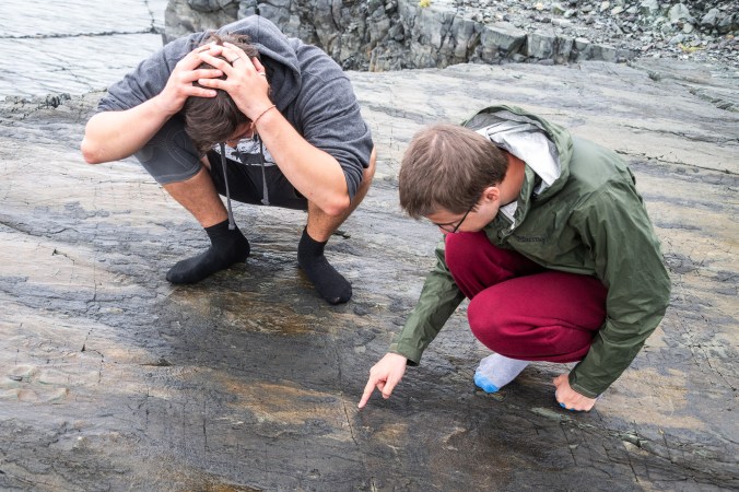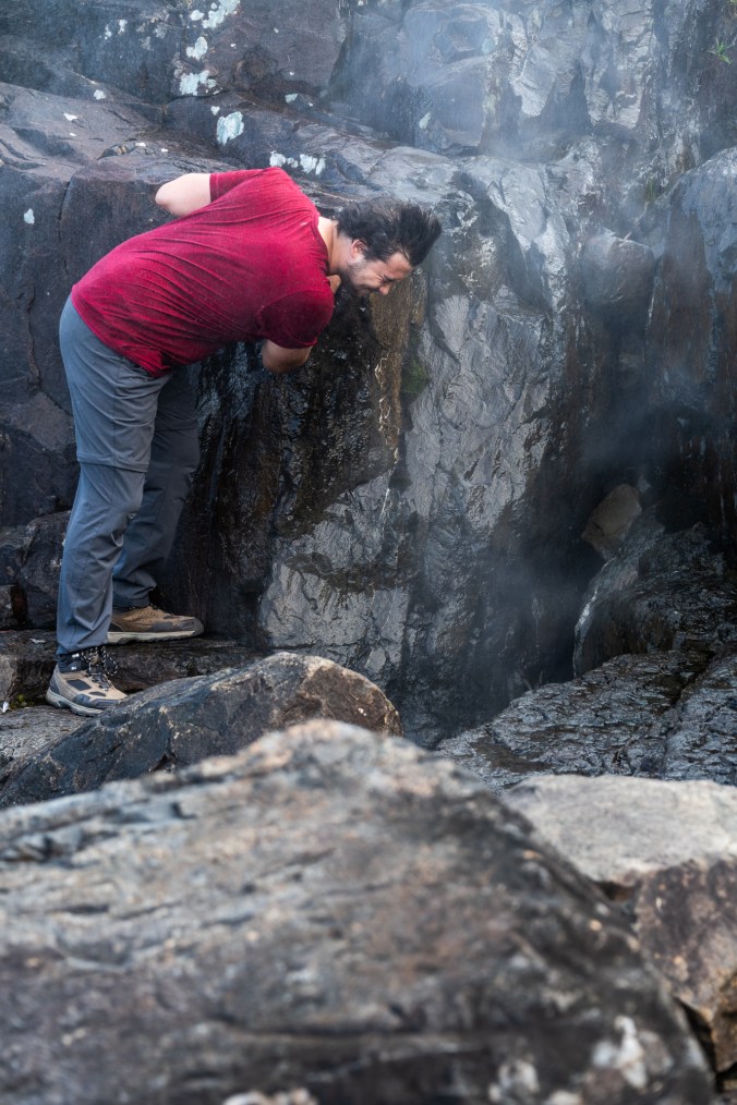 We spend hours exploring the area around the Spout, a wave-powered geyser.