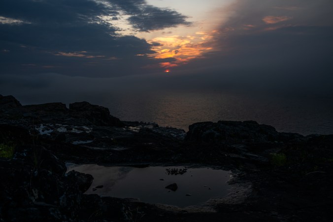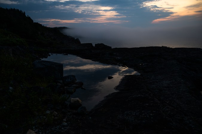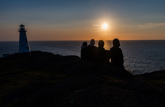 We start the next day at Cape Spear. Every morning, this rocky shore sculpted by waves and wind along North America’s easternmost point is the first place on the continent to see the birth of a new day. The air is bursting with pre-dawn freshness and new beginnings as we join a handful of people sprinkled along the edge. The ocean is breathing gently. The sky is streaked with soft pinks and oranges. My husband finds a spot sheltered from the wind where he can make coffee on our trusted Jetboil camping stove. Our younger son ends up in one of Park Canada’s red chairs in hopes of getting some more shut-eye as we wait for the sun to emerge from its nightly swim in the ocean. I look for a spot where I can capture both the lighthouse and the sun. I can hear fellow photographers behind me fawning over the soft pastel colours on the horizon. The red orb makes its appearance to the screeching of seagulls and kittiwakes. A sight that will be witnessed by many people across the continent as the day progresses. I think of Antoine de Saint Exupery’s Little Prince and envy his ability to watch, in his case, a sunset multiple times a day just by moving his chair.