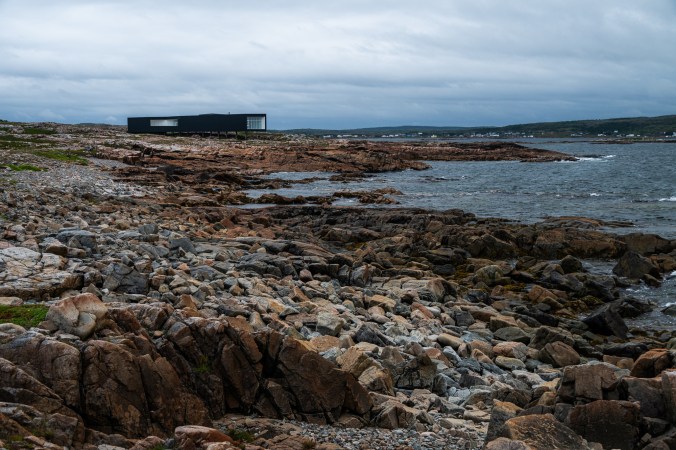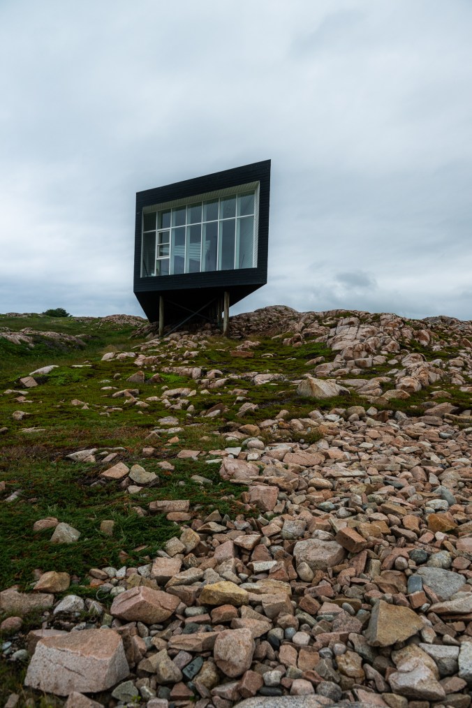 After a few more craft shops, we decide we’ve got enough Christmas ornaments and jam. By now, the rain has stopped so we hit the Joe Batt’s Point Walking Trail. We make our way along the jagged shore, past a playground and community gardens, until we reach the Long Art studio, one of the four art residency studios scattered around Fogo Island. These modern-looking structures, designed by Newfoundland-born, Norwegian-based architect Todd Saunders (also the creative mind behind the Fogo Island Inn), blend seamlessly with the stark landscape. I wonder what it would be like to create in this remote place at the meeting point of ocean and rock.