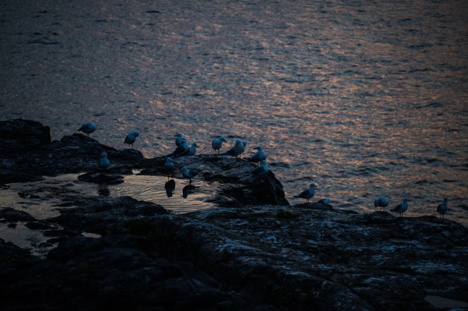 When we arrive at dawn, the coast is serene and eerie. A group of seagulls is splashing in a small pool of water on the rocks. We call it public baths. The sun takes its time emerging from behind a gauzy strip that has stitched the sky and the ocean together. Eventually, the red orb makes an appearance and repaints the world around. No matter how long I’ve been taking photos, I never cease to be amazed by the beautiful glow of the morning light.