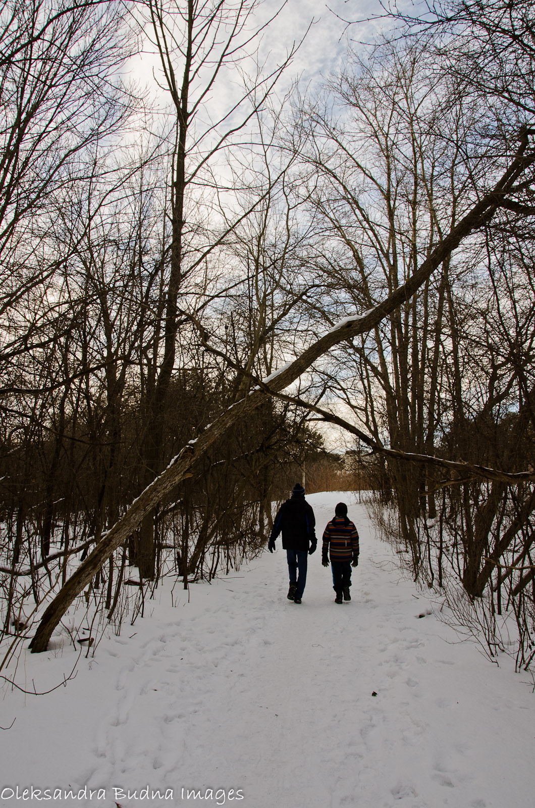 If I could go camping every weekend, I would. Things tend to get in the way though. Swimming and art classes for our younger kid, university assignments for the older one, grocery shopping and laundry, not to mention piles of tests to grade and report cards to write for my husband. So January went by without a single opportunity to get out of the city. We did go for walks around the neighbourhood but without any snow and temperatures well below freezing, it wasn’t as much fun as an outing in the woods would be. Last week, it finally snowed in Toronto so we spent the weekend rediscovering nature next door.