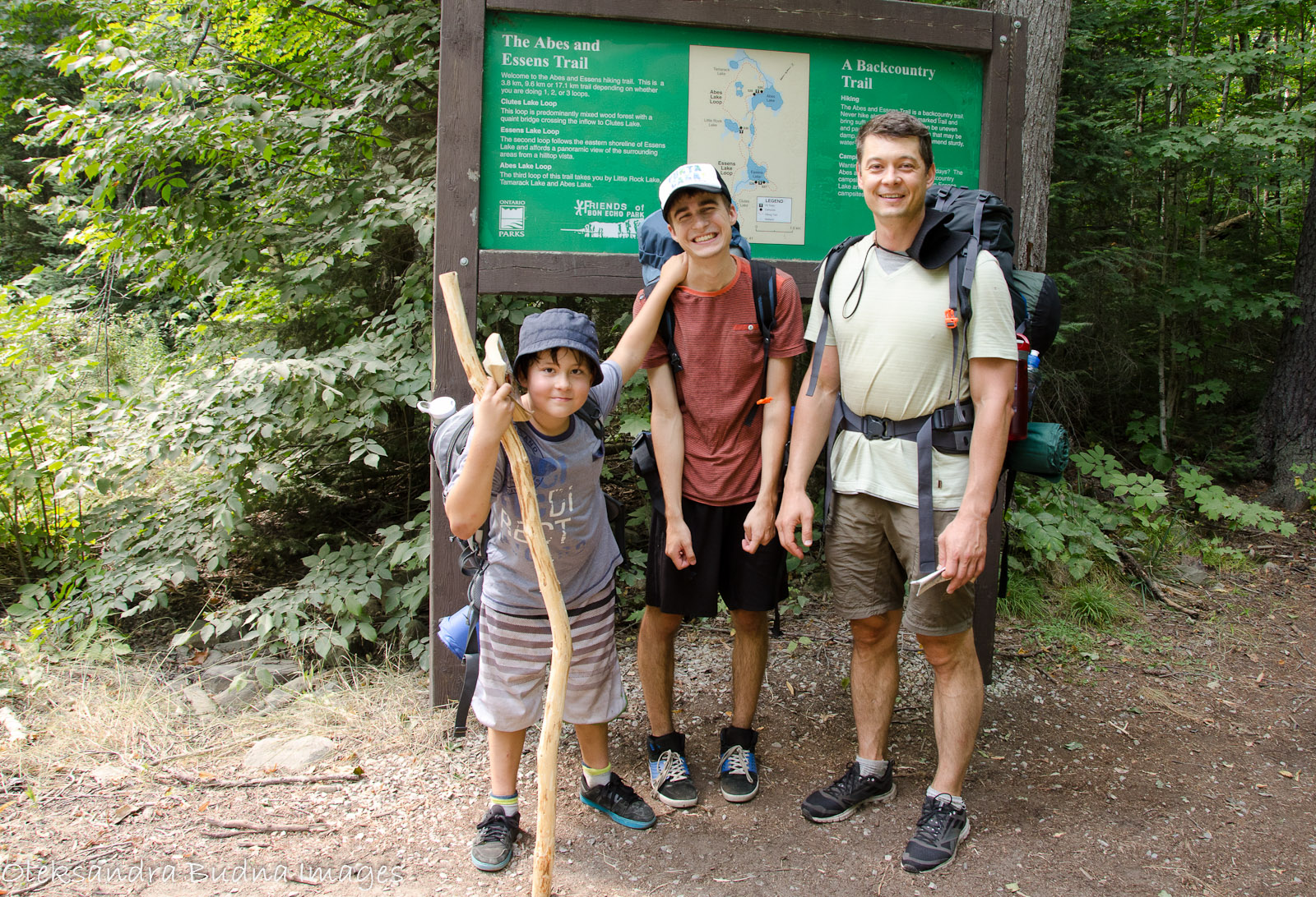 There were two more sites on Abes Lake, both occupied and looking pretty big. Once we got past Abes, the trail became really overgrown and that’s where I tumbled over and hurt my ankle. Even as I was falling down, two thoughts shot through my mind: What if I broke something? How are we getting out of here? Once the pain became less intense, we figured it wasn’t a fracture after all and since the only way to get out of there was to keep walking we had to move on. My husband piled up my backpack on top of his own, my kids found me a nice stick and I just hopped along.
