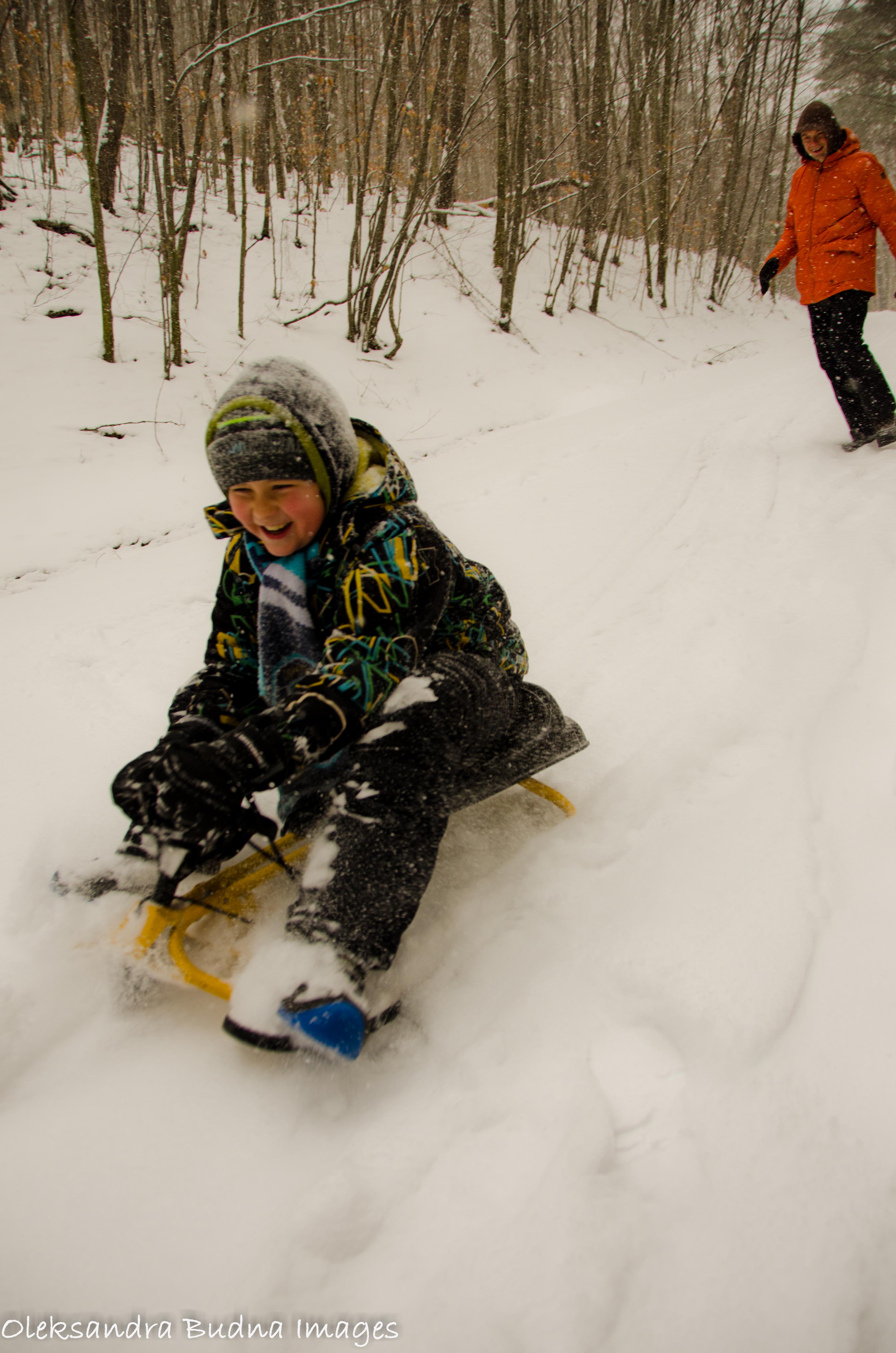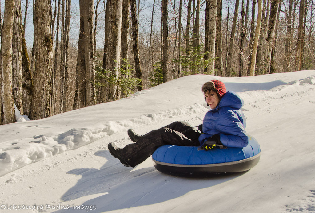 We decide to test our new snow tube on one of the hills. It was fun while it lasted, which wasn’t very long. About halfway down the first run, the tube ripped sending the kids tumbling down. There was a bit of complaining about scratched cheeks and cold snow but nothing a nice hot cup of chocolate wouldn’t fix.