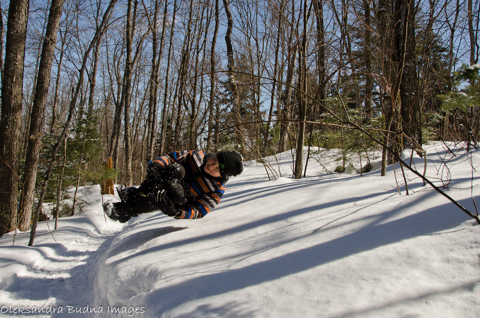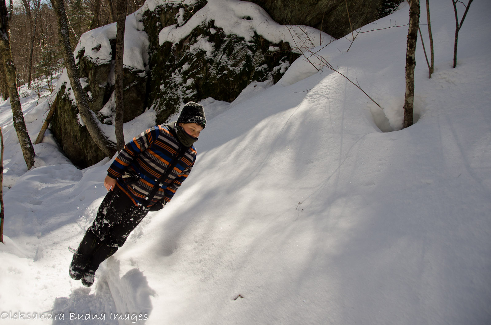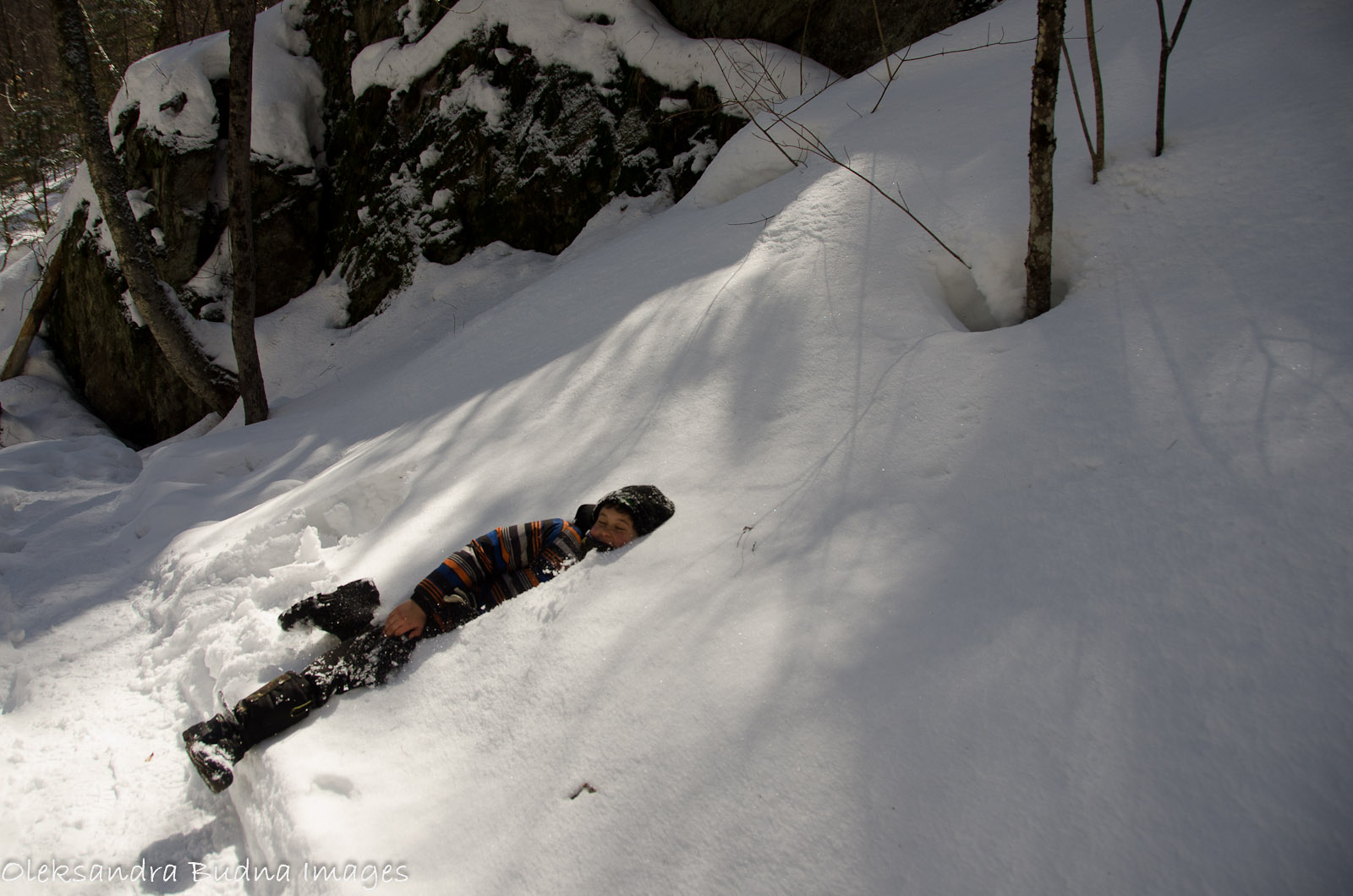 Along the trail, our son kept practicing his hide mode technique, which consisted of jumping sideways and disappearing into the snow banks.